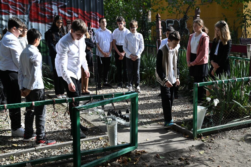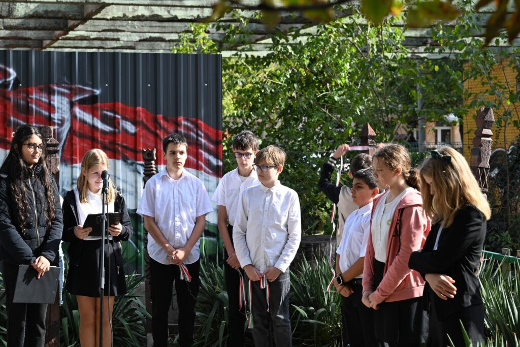 Október 6-án, az aradi vértanúk emléknapján iskolánk tanulói közösen hajtottak fejet a magyar történelem hősei előtt. A megemlékezést a 6. a osztály tartotta, Ungvári Gergely osztályfőnök felkészítésével. A ragyogó őszi napsütésben a diákok méltó módon idézték fel az 1849. október 6-án Aradon kivégzett tizenhárom honvédtiszt emlékét, akik életüket áldozták a magyar szabadságért. A műsorban versek, idézetek és zenék segítették felidézni a szabadságharc hőseinek bátorságát, hazaszeretetét és kitartását.