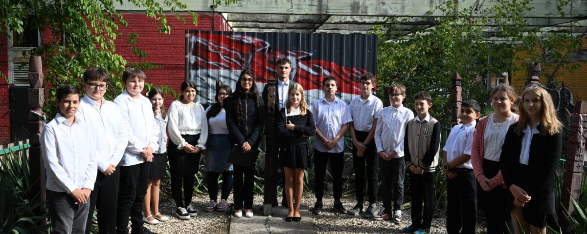 Október 6-án, az aradi vértanúk emléknapján iskolánk tanulói közösen hajtottak fejet a magyar történelem hősei előtt. A megemlékezést a 6. a osztály tartotta, Ungvári Gergely osztályfőnök felkészítésével. A ragyogó őszi napsütésben a diákok méltó módon idézték fel az 1849. október 6-án Aradon kivégzett tizenhárom honvédtiszt emlékét, akik életüket áldozták a magyar szabadságért. A műsorban versek, idézetek és zenék segítették felidézni a szabadságharc hőseinek bátorságát, hazaszeretetét és kitartását.