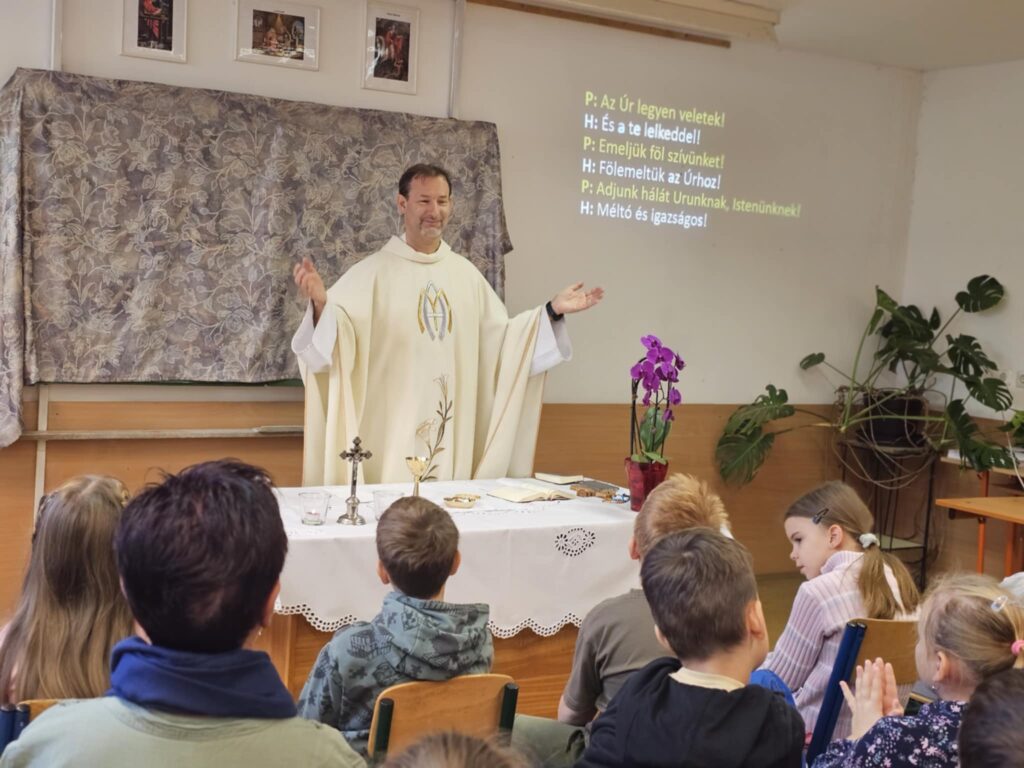 A mai napon különleges eseményen vehettünk részt a 3.c osztállyal: iskolánk életében először tartott osztálymisét Czap Zsolt atya, iskolánk lelki vezetője, a tanulóknak és a velük ünneplő felnőtteknek.