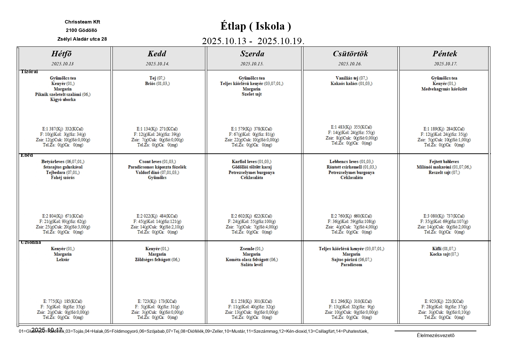 Étkezési információk