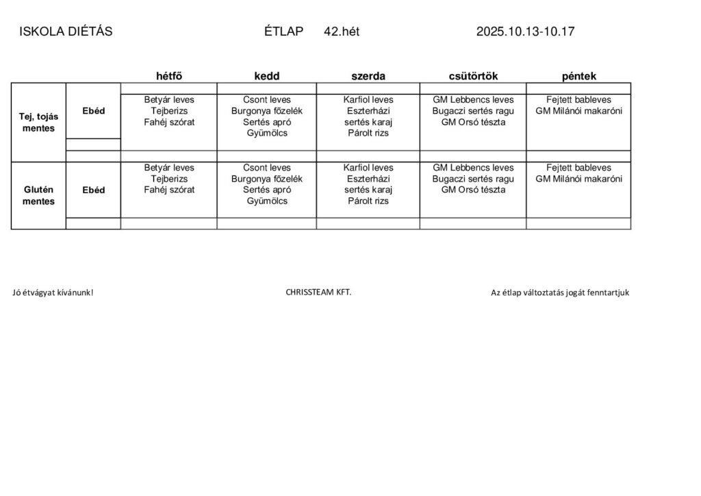42.heti étlapok