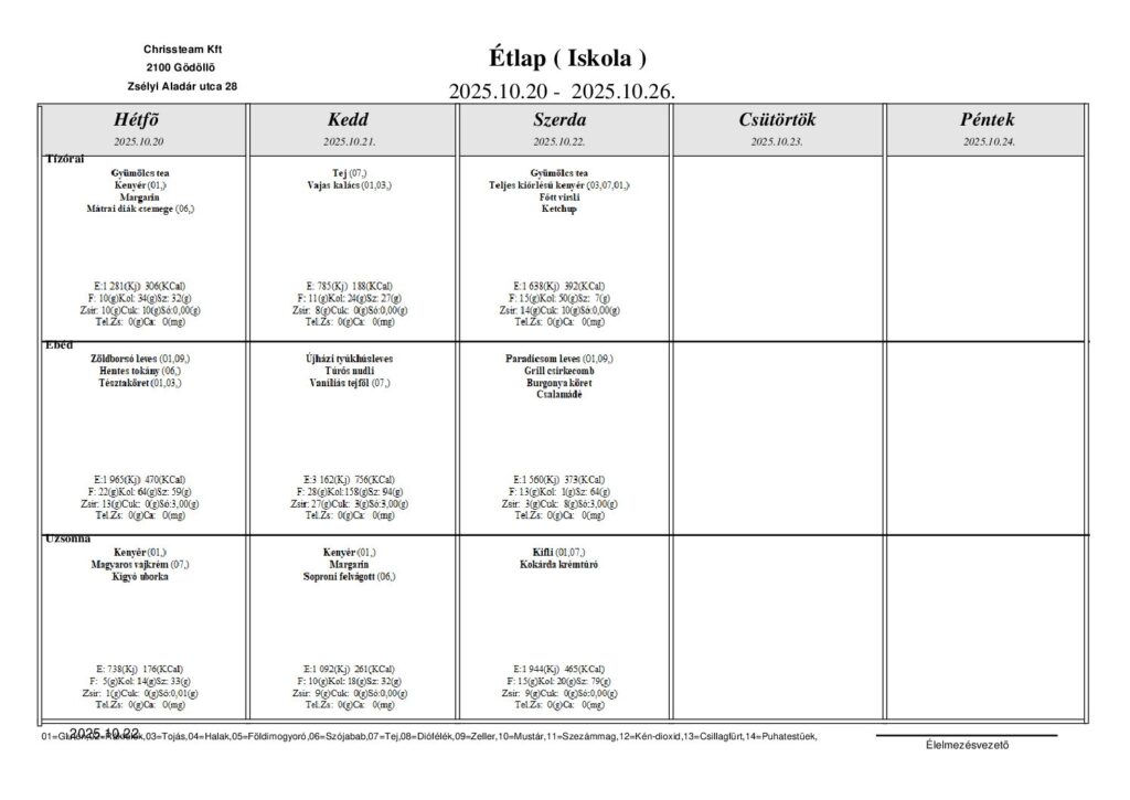 Étkezési információk
