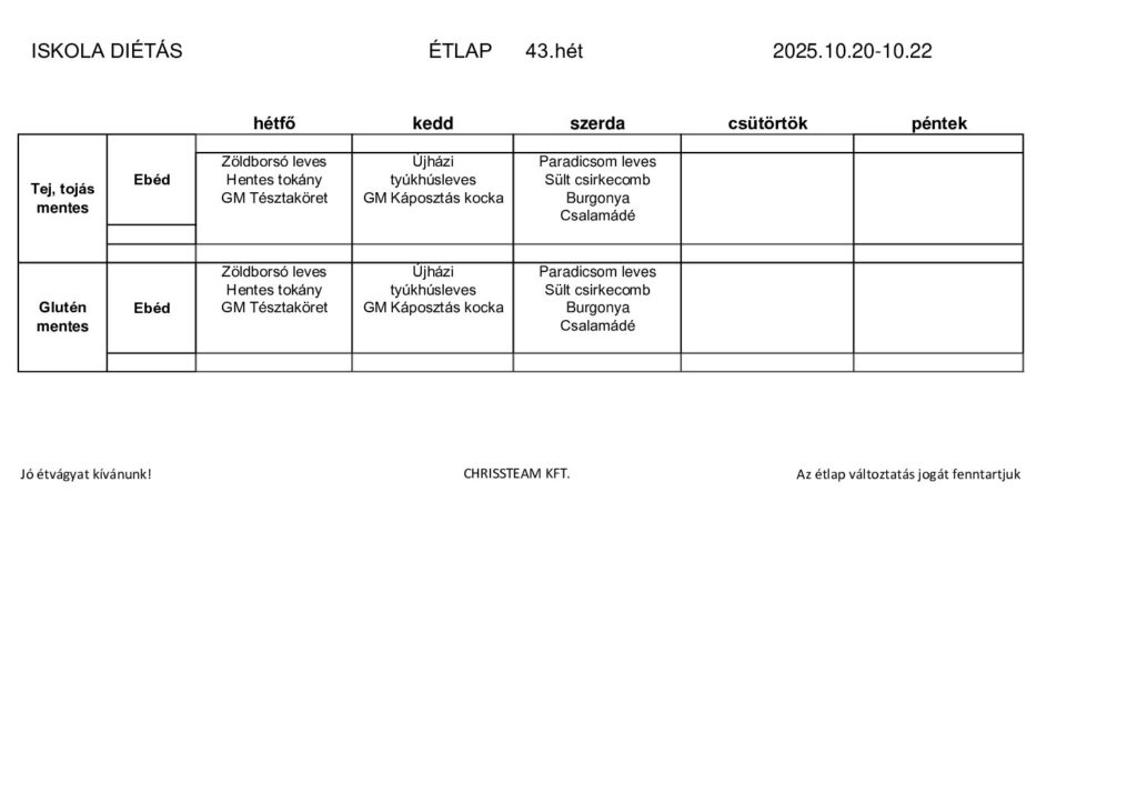 43.heti étlapok