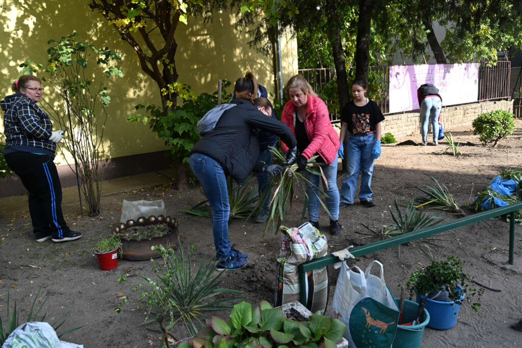 Ültettünk fát, virágot, bokrot, vágtunk, ástunk, festettünk, szereltünk közös erővel, és hálával, hogy együtt lehetünk és együtt tölthetjük ezt a pár órát.