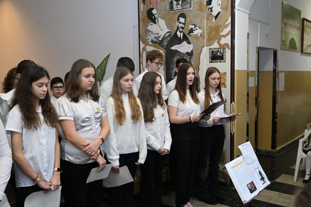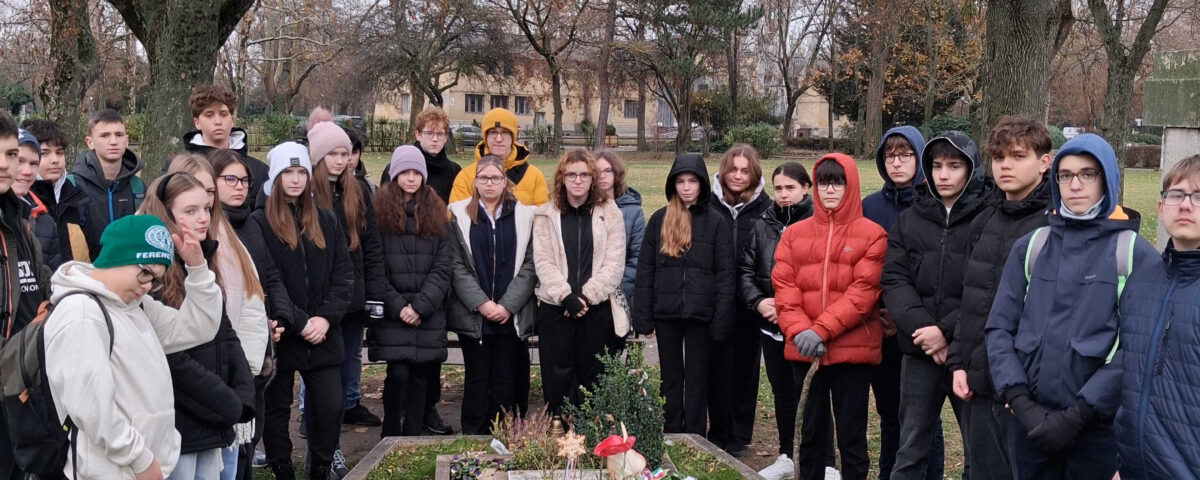 December 3-án, iskolánk névadójának, egyik legnagyobb költőnk, József Attila halálának 88. évfordulójára emlékeztünk. A költő verseit, megzenésített verseit a 8.a és 8.b adta elő. A műsor összeállítója Pongrácz Krizmanits Mária, a zenei rész betanítója Pálffi Krisztina volt. A két végzős osztály az emlékműsor után a Fiumei sírkertben a költő sírjánál koszorúzott, majd a Gát utcai szülőházat látogatta meg.