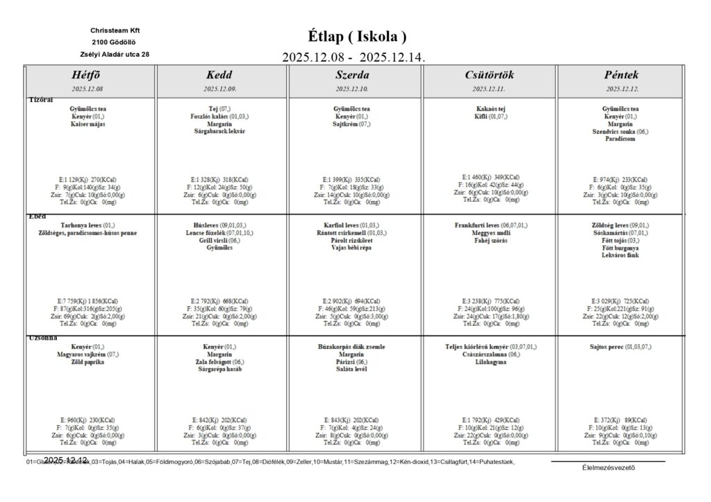Étkezés változtatása a 2026.évre
