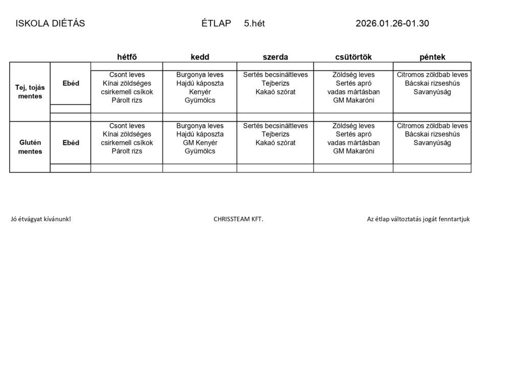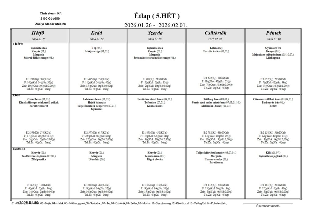 5.heti étlapok